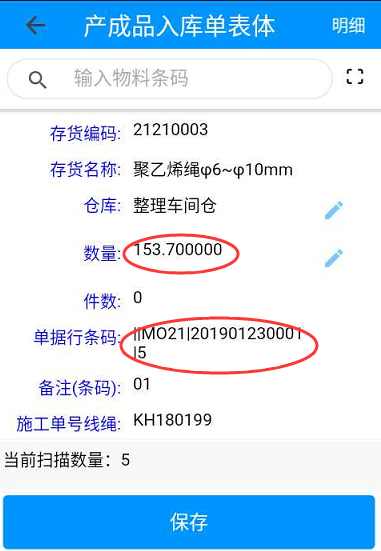 2.通過(guò)掃描《生產(chǎn)訂單》,生成產(chǎn)成品入庫(kù)單,倒庫(kù)入沖生成材料出庫(kù)單